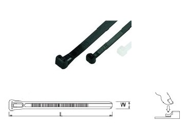 按压束带头部延伸的卡齿,可快速、轻松地解开束带。 一体成型的结构确保品质稳定可靠。 可以轻松地解开和重覆使用,可应用于常需变更线材安装的研发、 生产或维修领域。 材质: PA66,UL耐燃等级94V-2 颜色: 各种颜色可订制
