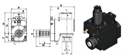 径向内缩筒夹动力刀座 产品编号径向内缩筒夹动力刀座 规格说明