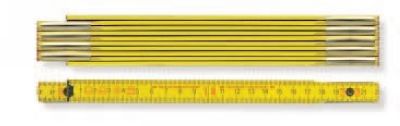 Beechwood folding rule*, section thickness 3.0 mm, section height 16 mm, no. of sections 10, riveted and brass-plated spring joints ensure permanent dimensional accuracy. 2 m length with duplex graduation. Also available in length of 1 m with 6 sections.