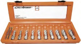 10-er Set Kernbohrer: mit je ? 2 x 14.0 - 1 x 16.0 - 2 x 18.0 - 1 x 20.0 - 2 x 22.0 - 1 x 24.0 - 1 x 26.0 mm in stabiler Kassette incl. 2 Auswerfersti