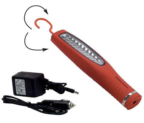 高亮度 30 LEDs,5小时持续照明 充电,约2小时,防水(IP 65标准) 挂钩360°旋转,交流充电器和充电线